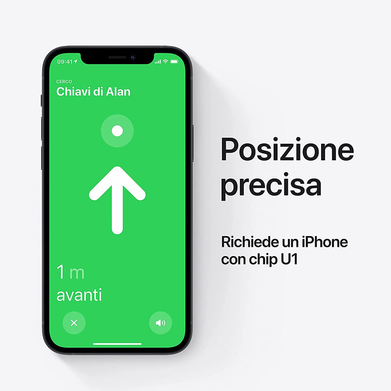 Grazie alla tecnologia Ultra Wideband, la funzione “Posizione precisa” ti guida al punto esatto in cui si trova il tuo AirTag (solo con alcuni modelli di iPhone)