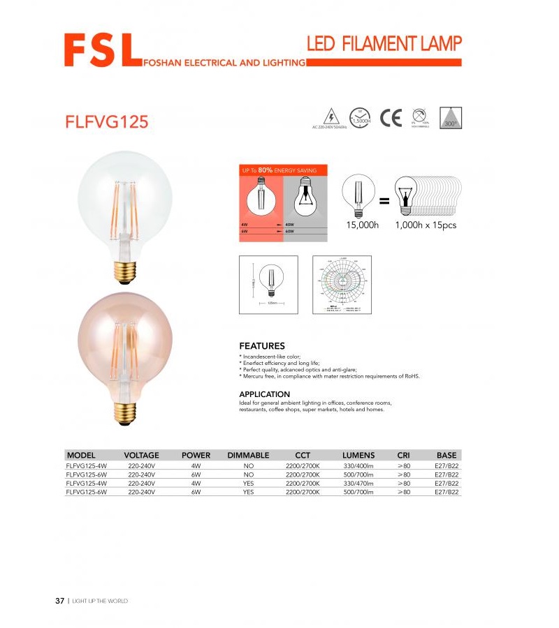 | G125 | 6w | 2700K | 700 | 300° | E27 | Ø125-h133 |